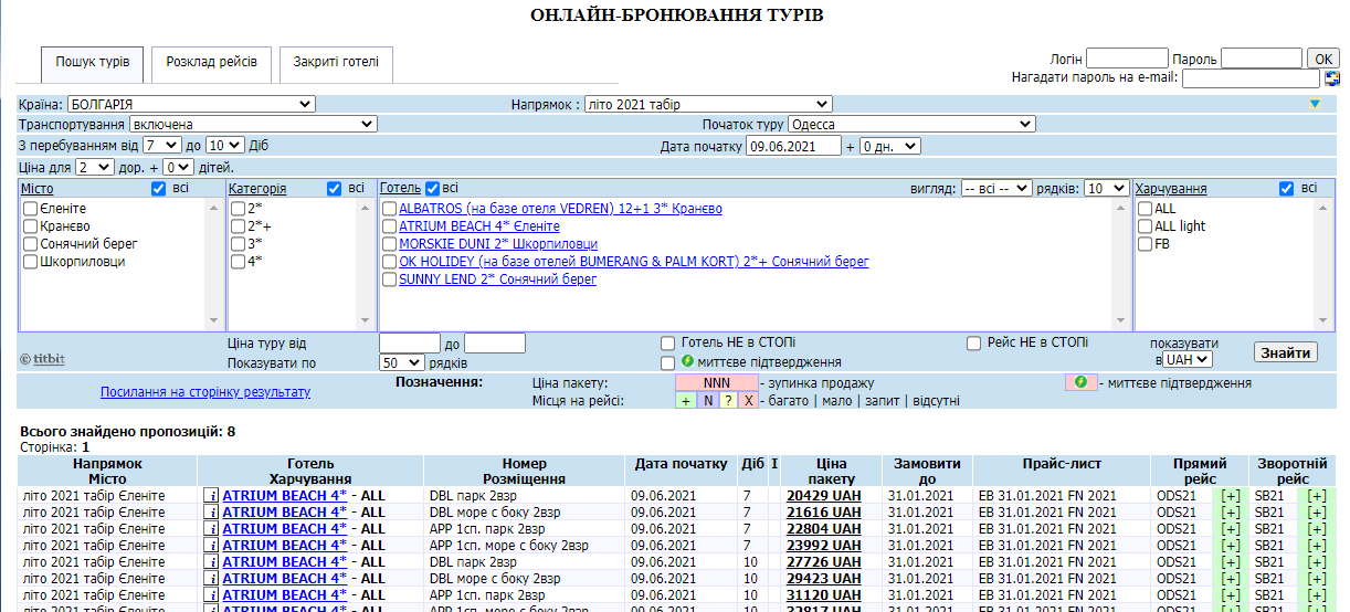 доступна тільки для зареєстрованих партнерів та для співробітників туроператора.