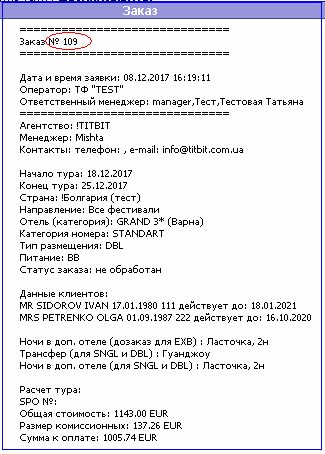 замовників (для зареєстрованих агентів, для прямих туристів).
