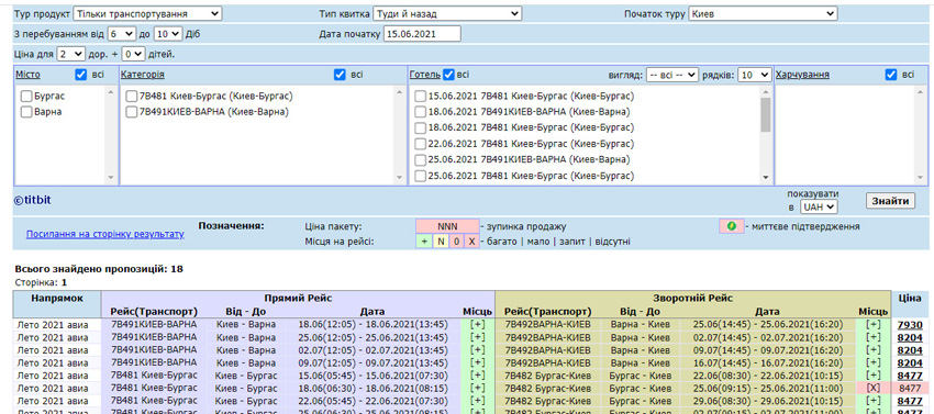 онлайн-продажу - "тури з транспортом" і "тільки розміщення (готель)". За